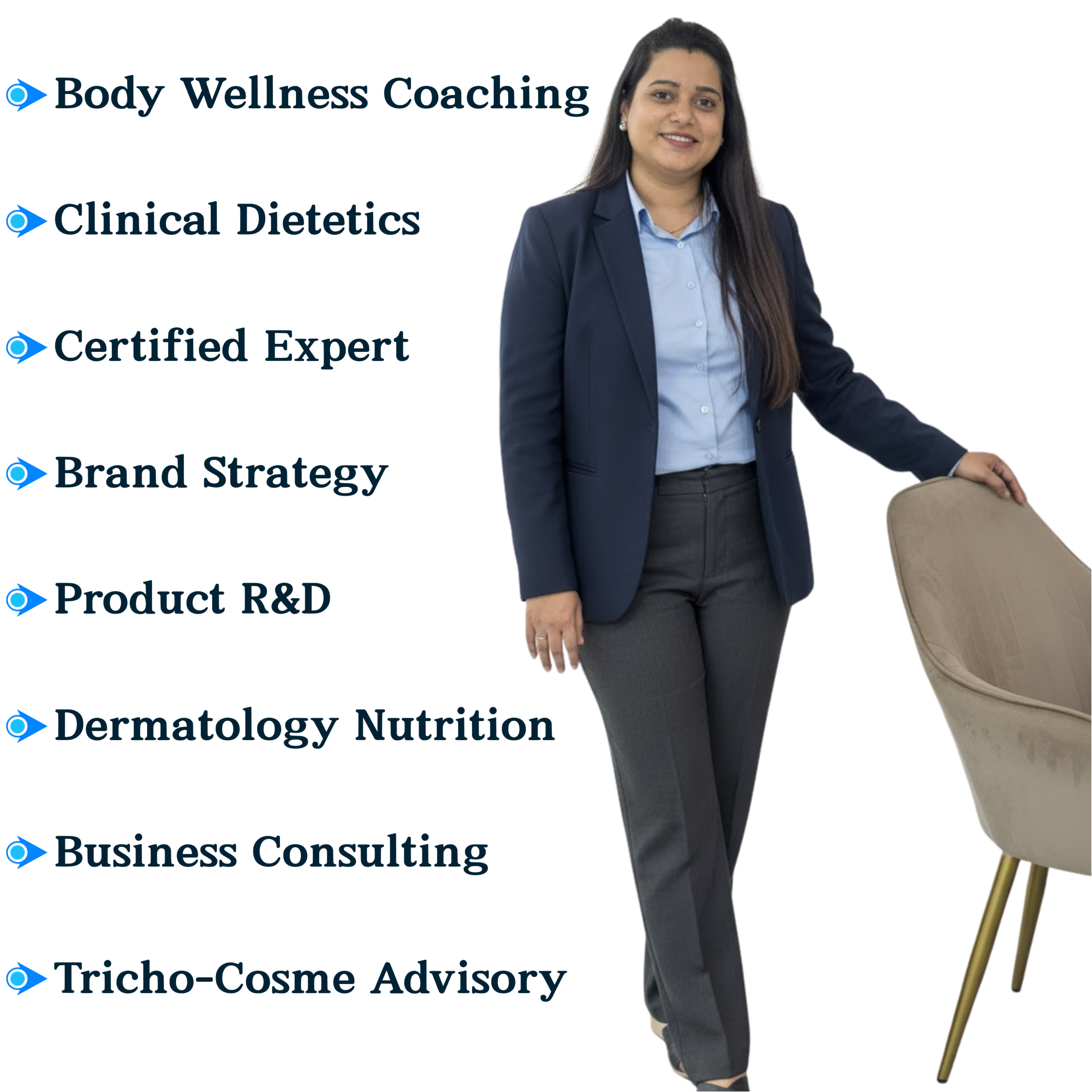 Every recommendation is grounded in formal certification and professional training in Dermatology Nutrition, ensuring safety, credibility, and long-term effectiveness.